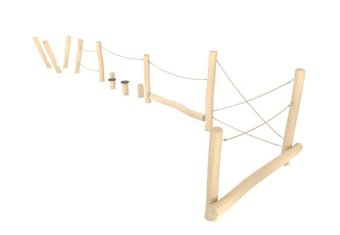 Vi udnytter bakkerne i området for at skabe nogle spændende aktiviteter i junglestien. Stien bliver naturligt smal og lang, fordi vi vil bevare så meget af det grønne som muligt.